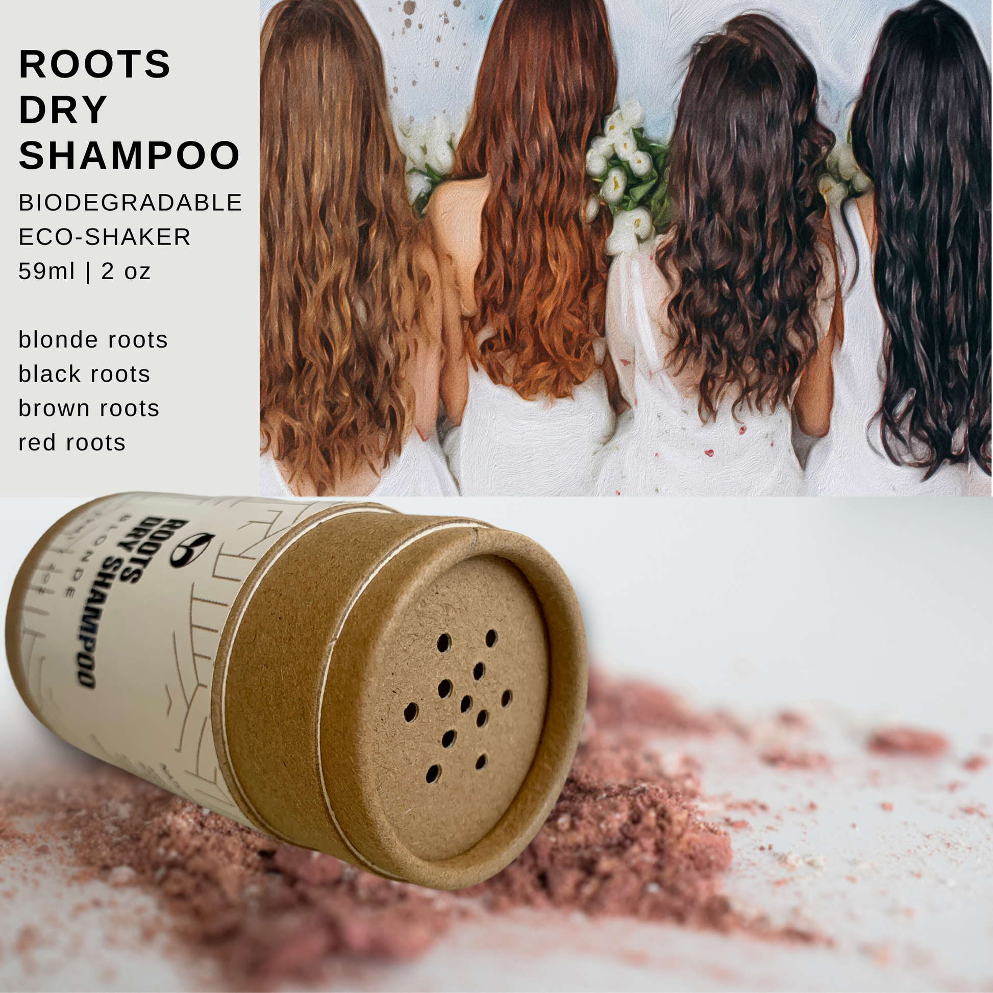 ROOTS DRY SHAMPOO isn't just an oil-absorbing powder that can soak up excess grease and dirt without water it will also give your hair a break between shampoos, color-treatments, and using these powders in between washings will keep hair fresh, soft, and manageable. They are also great for travel. The natural ingredients used in Roots dry shampoo absorb oil build up and remove it when brushed out, without causing damage to the hair or scalp.