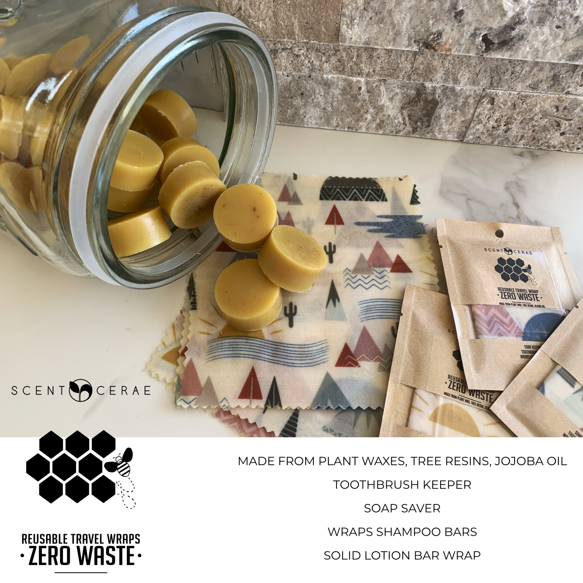 - ECO TRAVEL WRAP 3 PK each wrap is 6" in size and packaged in compostable bag here